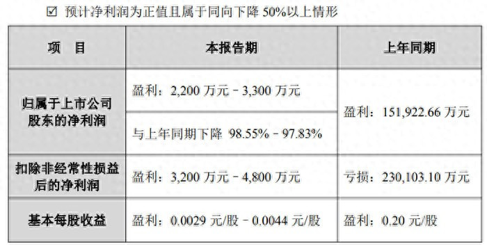 2026 年 1 月 21 日,合力泰科技股份有限公司(证券代码:002217,证券简称:合力泰)发布 2025 年度业绩预告。公司预计业绩呈现归属于上市公司股东的净利润同向下降 50% 以上的情形。具体来看,归属于上市公司股东的净利润预计为 2200 万元 - 3300 万元,上年同期则为盈利 151922.66 万元,同比下降 97.83%-98.55%;扣除非经常性损益后的净利润预计为 3200 万元 - 4800 万元,上年同期为亏损 230103.10 万元,实现扭亏为盈;基本每股收益预计为 0.0029 元 / 股 - 0.0044 元 / 股,上年同期为 0.20 元 / 股。